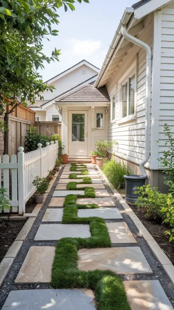 Let’s talk curb appeal—because sometimes your walkway isn’t just a side route, it’s also the first thing people see. This idea works whether your path runs from the front yard around to the back, or connects a small patio area to your main entrance.