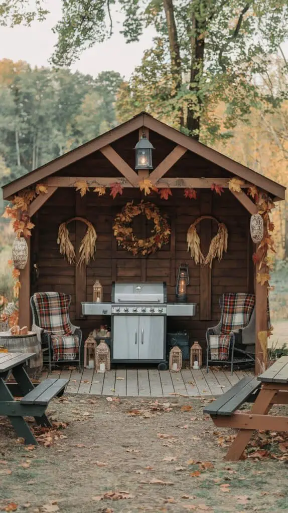Finally, don’t underestimate the power of decoration. A BBQ shack doesn’t have to stay plain and practical—you can dress it up to suit the season. For autumn, hang small wreaths made of leaves or corn husks, place lanterns with candles on the counters, or add plaid blankets to chairs nearby.