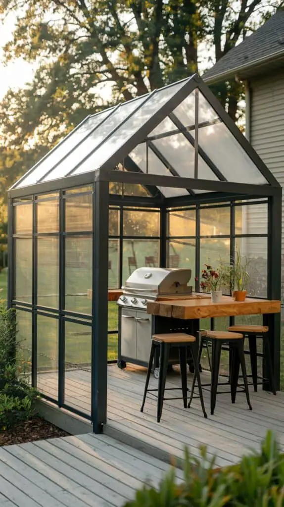 If you want to protect your grill and still keep an airy vibe, go for a BBQ shelter design with clear polycarbonate panels on the roof or walls. It’s practical because the panels keep out rain and snow but let in light, so the space doesn’t feel boxed in.