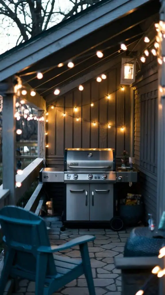This is one of those cheap but effective DIY BBQ shack tricks that can transform a plain grill corner into a magical spot. The lights reflect off the walls of the shed or fence, creating a glow that feels both practical and atmospheric. Perfect for roasting marshmallows after the main meal or just sipping hot chocolate while the coals burn down.