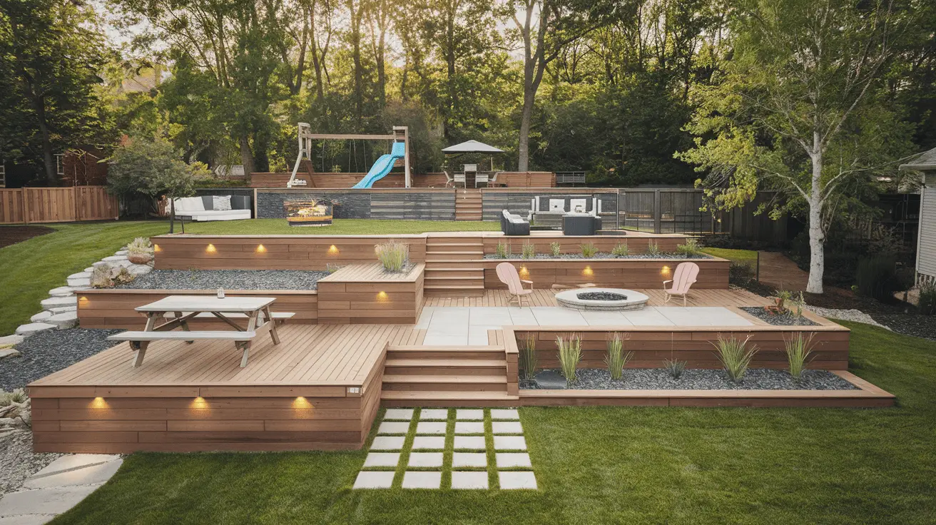 A well-designed multi-level backyard can help divide spaces for different activities, create visual interest, and make the most of sloped terrain. But where do you start? Should you go for a sleek, modern design or embrace a natural, rustic aesthetic? How can you make your outdoor space functional for both kids and adults?