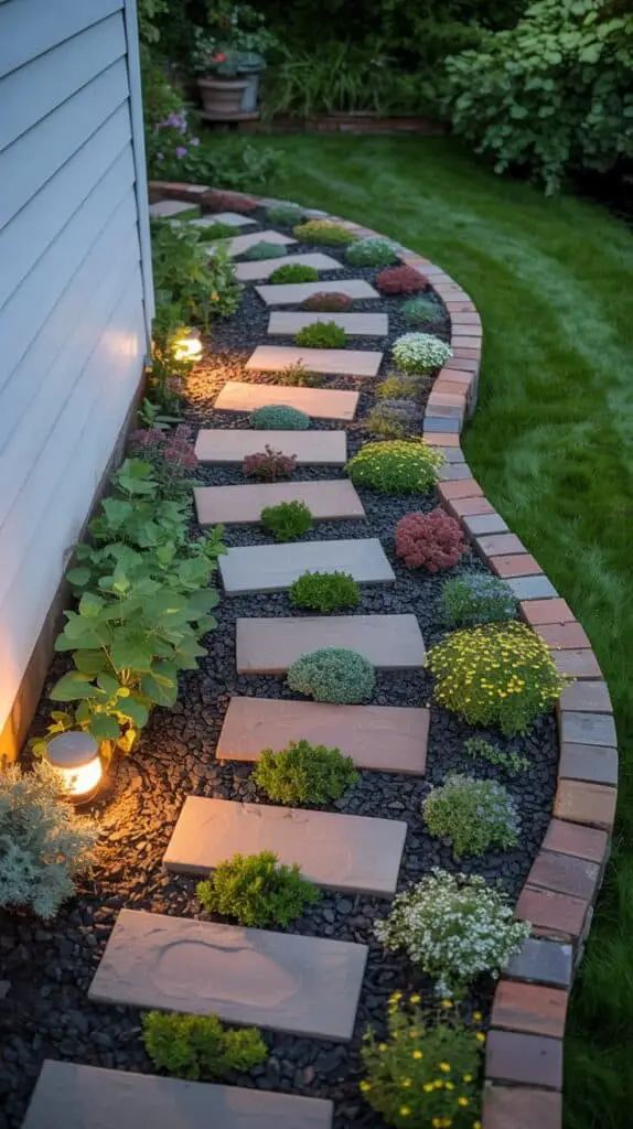 This is especially lovely for kids or pets, who seem to love tiny pathways more than anyone. Frame the sides with soft edging plants — nothing too tall — so it doesn’t feel overgrown. You want it to feel tucked away, not forgotten.