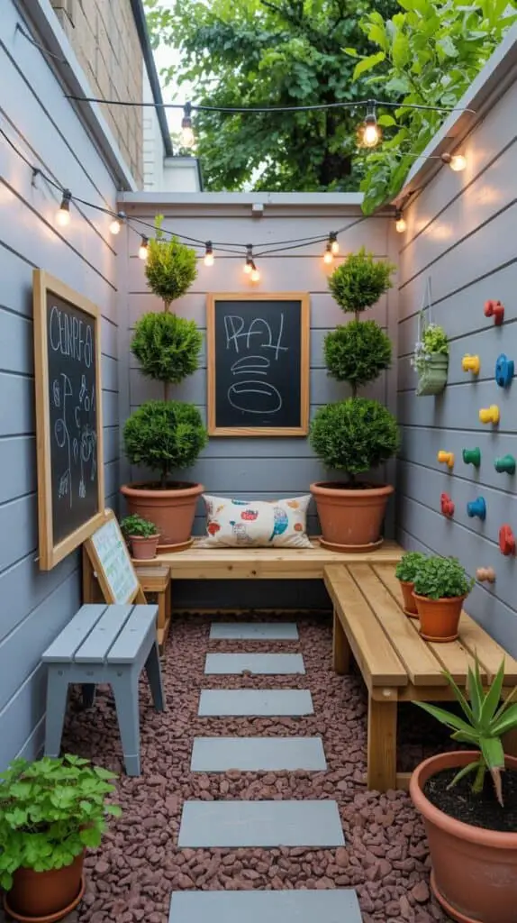 Every tiny yard has “that weird corner” — too narrow, too shady, too awkward. Instead of ignoring it, turn it into a charming kids’ courtyard.