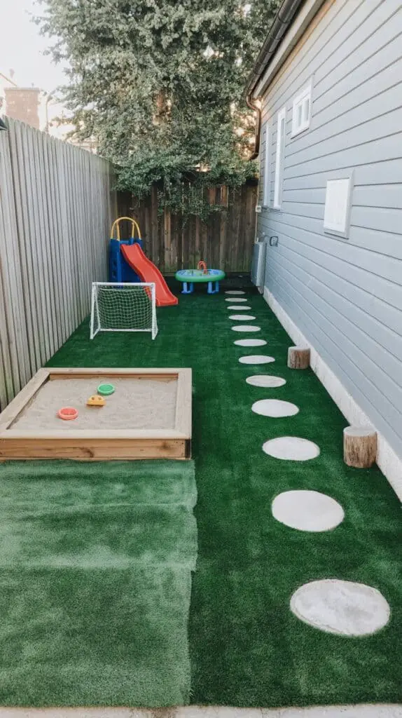 A Side Yard Kids’ Play Area With Turf for Low-Maintenance Fun