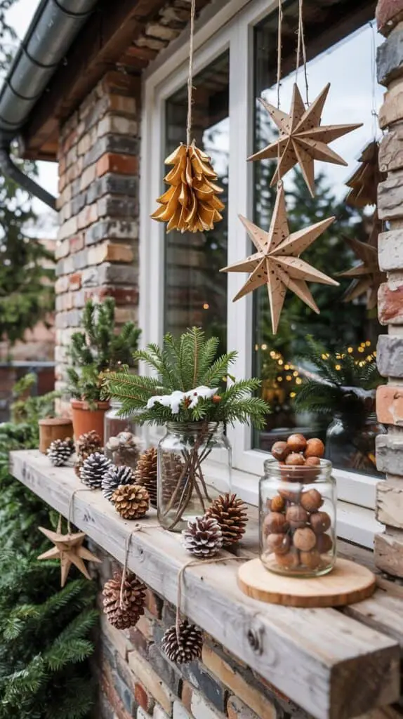 One of the best ways to decorate a family balcony is to keep things natural—and a bit imperfect. Kids love helping with these projects, and it turns decorating into a fun weekend activity. Collect pinecones, small branches, or acorns on a family walk, then spray-paint them gold or dust them with fake snow.