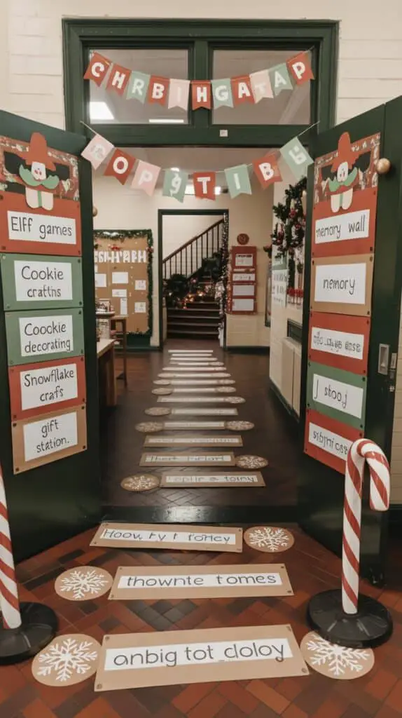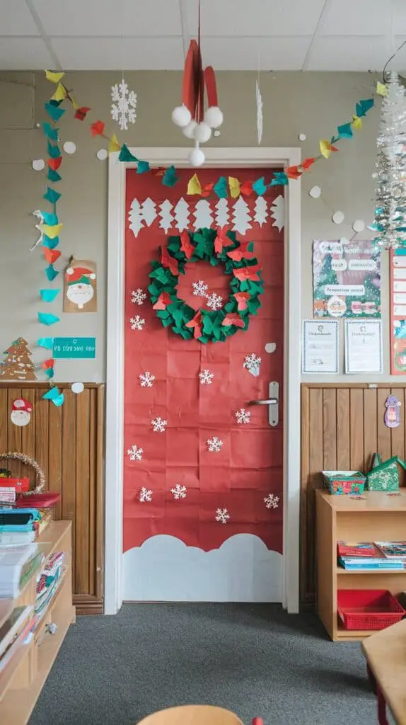 You can also decorate classroom doors as part of a friendly competition — “Santa’s Workshop,” “The Grinch’s Cave,” or “Snowy Cabin” themes always bring out the laughs. Use craft paper, old wrapping scraps, and a touch of imagination.