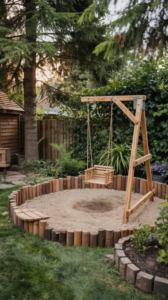 Add a few personal touches like a painted sign (“Adventure Park” or “Backyard Hideout”) or stepping stones leading to the swings. These small details make the space feel intentional, even if most of it was DIY’d on a weekend.