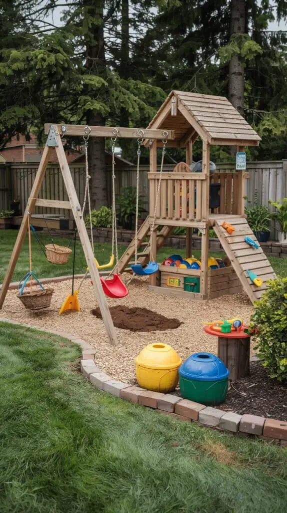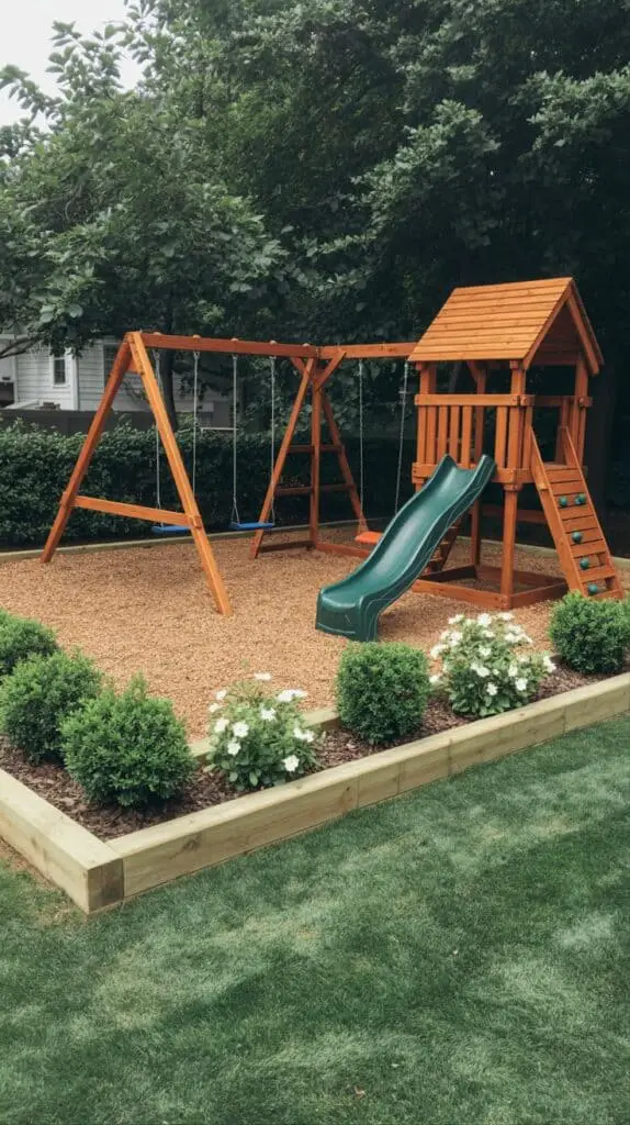 Backyard Playground Landscaping with Natural Charm