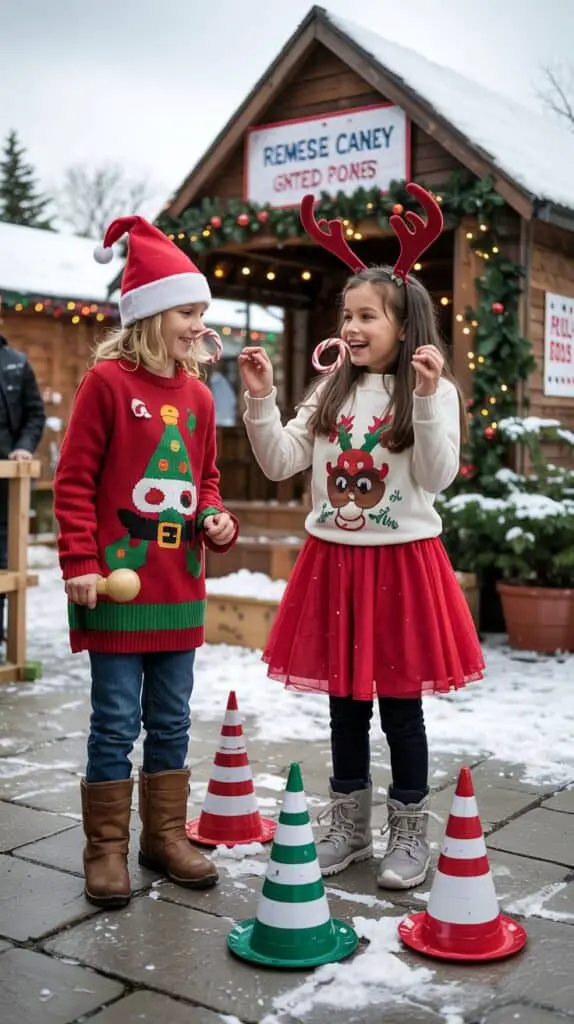 Add a “Guess the Candy Cane Flavor” booth for something a bit quirky. Blindfolded players taste different candy canes — peppermint, cherry, mystery — and try to guess the flavor. It’s hilarious, easy, and great for all ages.