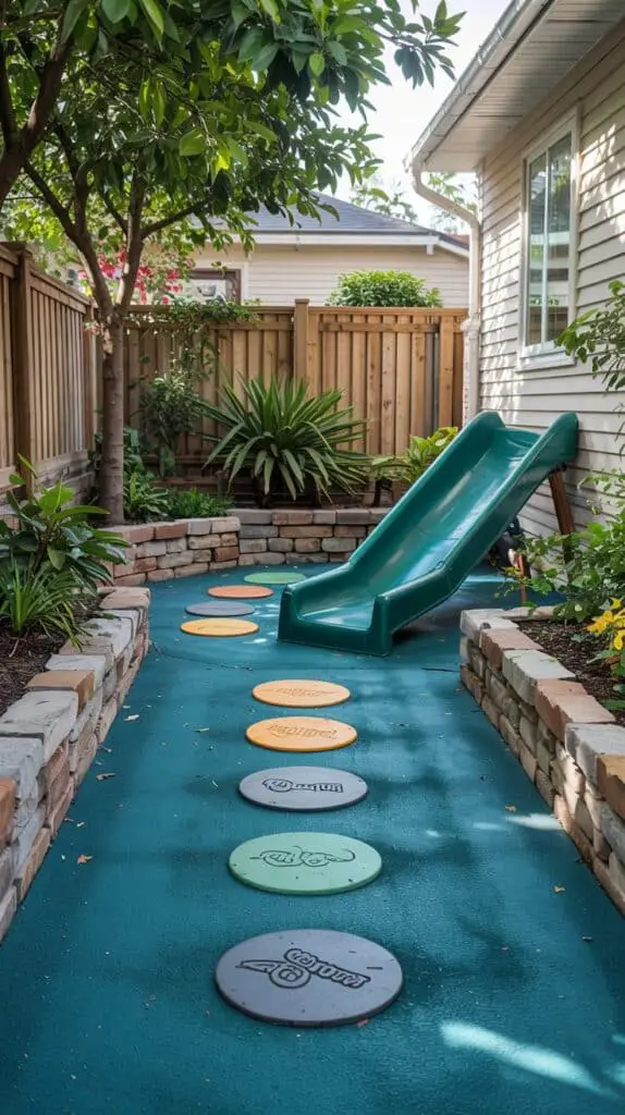 This design uses DIY elements, inexpensive materials, and smart placements so you can give your kids a joyful, stimulating outdoor play zone without turning your yard into a construction site.