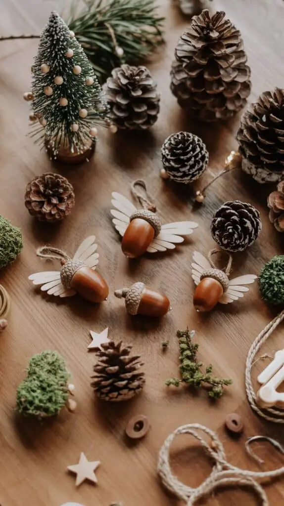 This article is designed for parents, teachers, and anyone hosting a winter sleepover who wants calming crafts that feel festive without being overwhelming. Everything here can be done in an afternoon or as a slow, cosy evening activity. Most projects use acorns, pine cones, and simple supplies like felt, yarn, paper wings, and glue — meaning kids can experiment freely without much mess. And the best part? Every little item they make turns into a sweet Christmas decoration, a tiny gift, or a keepsake for the tree.
