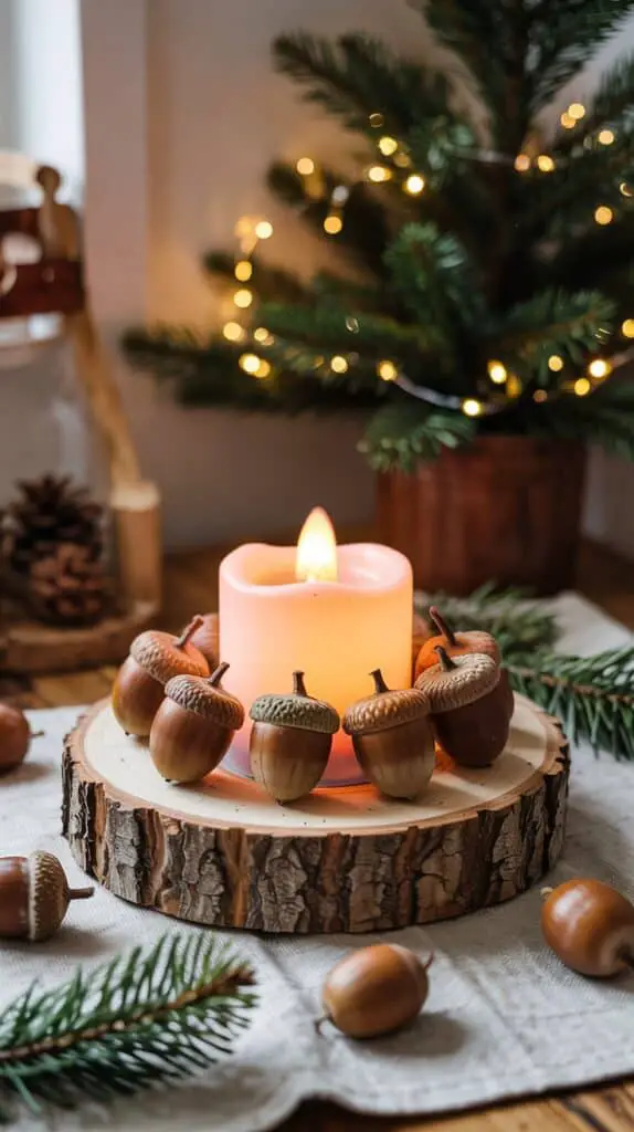 Kids can glue acorn caps around the base of a battery-powered tea light to create a soft, nature-inspired candle. These look magical during a cosy Christmas movie night or in a bedtime reading corner.