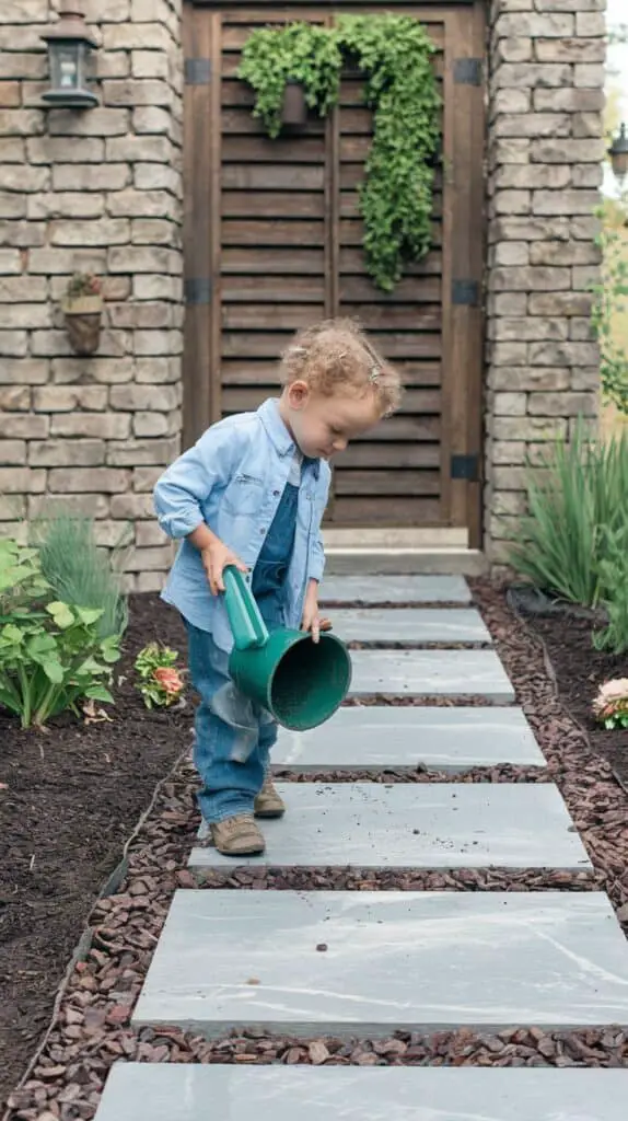 A quick hack I swear by: finish your walkway with mulch or pea gravel borders instead of pricey edging stones. It’s cheaper, it hides mistakes, and it looks intentionally rustic. Bonus: kids can help pour the mulch, which somehow makes them feel like contractors on a mission.