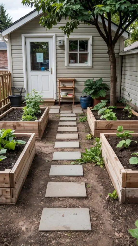 If you’re renting and don’t want permanent beds, this still works with large fabric grow bags grouped together to mimic a bed. It’s not as polished, but it’s flexible and budget-friendly.