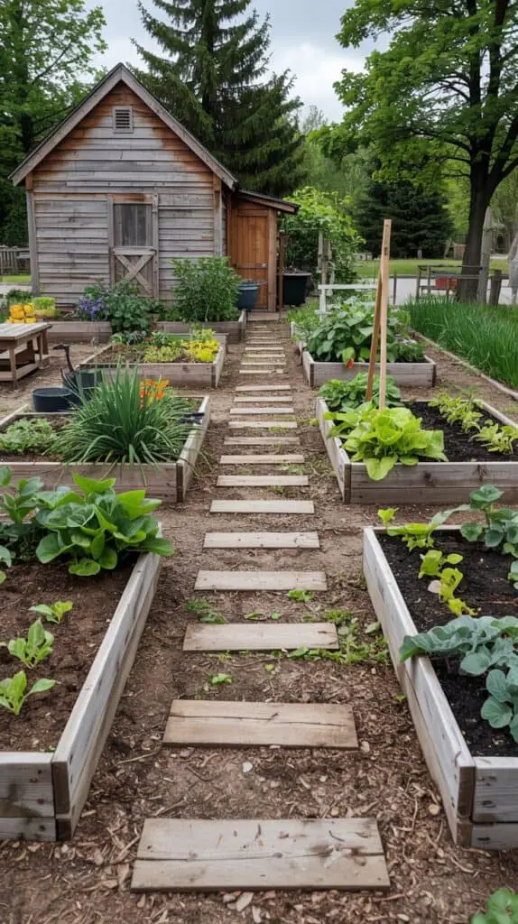 To keep a classic kitchen garden feel, think in clear lines. One main path through the center, and smaller side paths that create simple rectangles. If space is tight, even one clean path with beds on both sides gives you that “orderly and old-fashioned” look without needing a huge footprint.