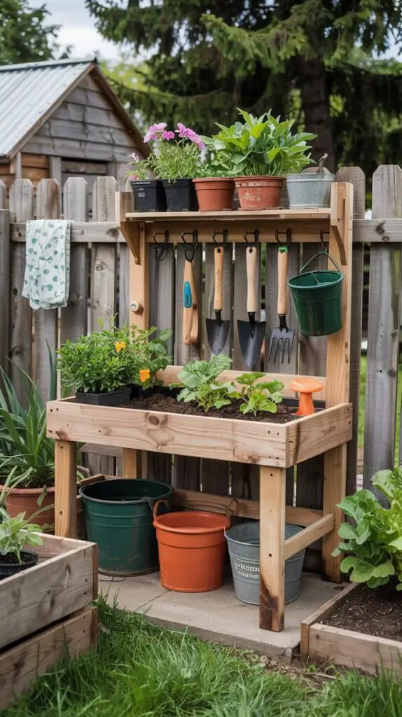 This doesn’t have to be a big shed setup. A small bench, a hook rail for hand tools, a bucket for clippers and gloves, and a lidded bin for potting soil can be enough. Place it near the kitchen garden but not directly in the main view if clutter stresses you out. If you’re renting, make it portable: a weatherproof deck box, a rolling cart, or a tall storage cabinet that can move later.