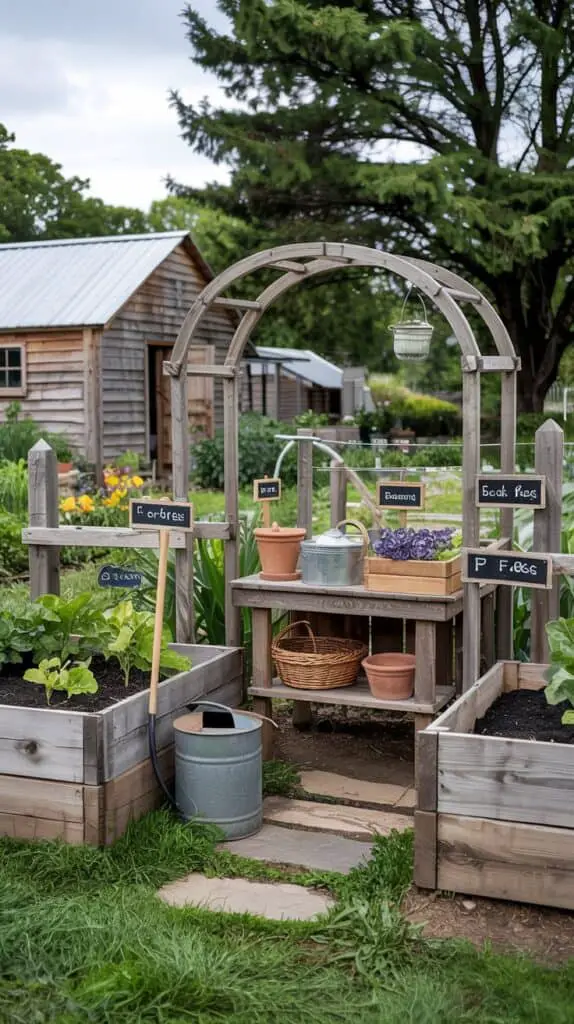 Try not to add too many “decor” elements. The kitchen garden itself is the visual feature. When you keep the structure simple, the plants do the talking.