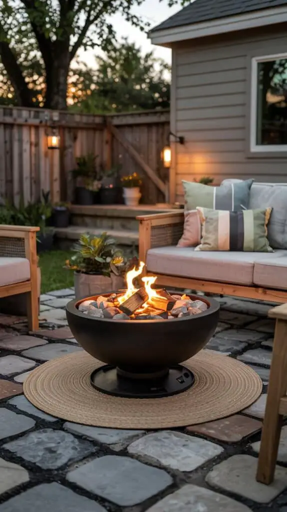 You don’t need a giant built-in firepit. Small tabletop fire bowls, ethanol burners, and even solar-powered flame lanterns bring that cozy evening flicker without the big cost. It’s safe, family-friendly, and instantly makes the patio feel fancy. Kids will think it’s magic. Adults will think you suddenly have great taste.