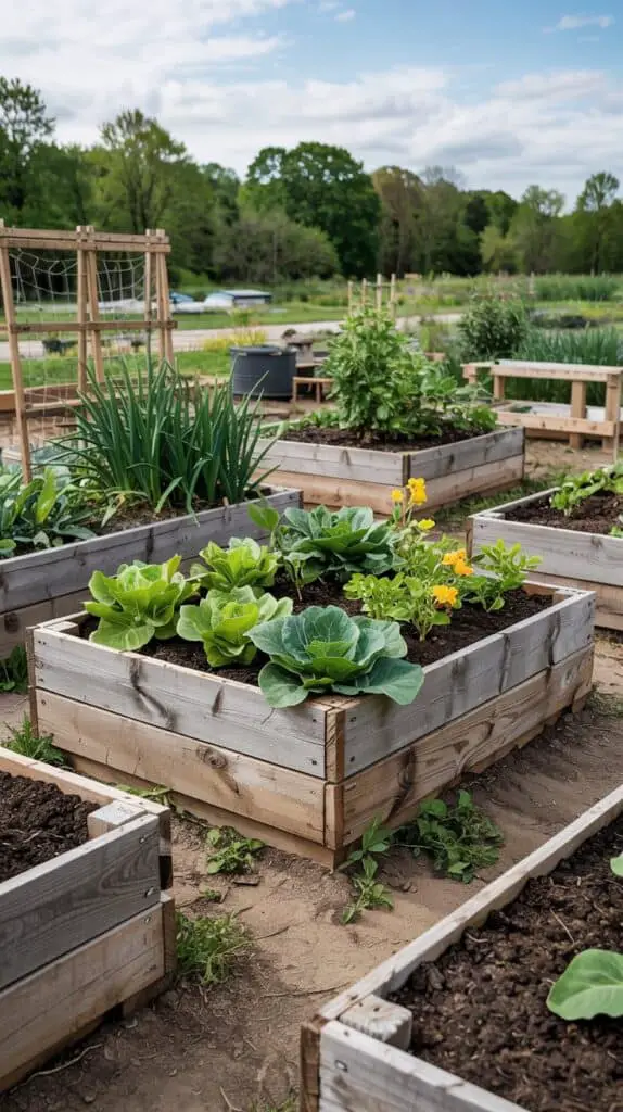 Many of the materials for DIY garden beds can be sourced for free or very cheaply. Old pallets, leftover fence boards, concrete blocks, bricks, or even sturdy scrap wood can all form the structure of a raised bed. The key is keeping the design simple and flexible.