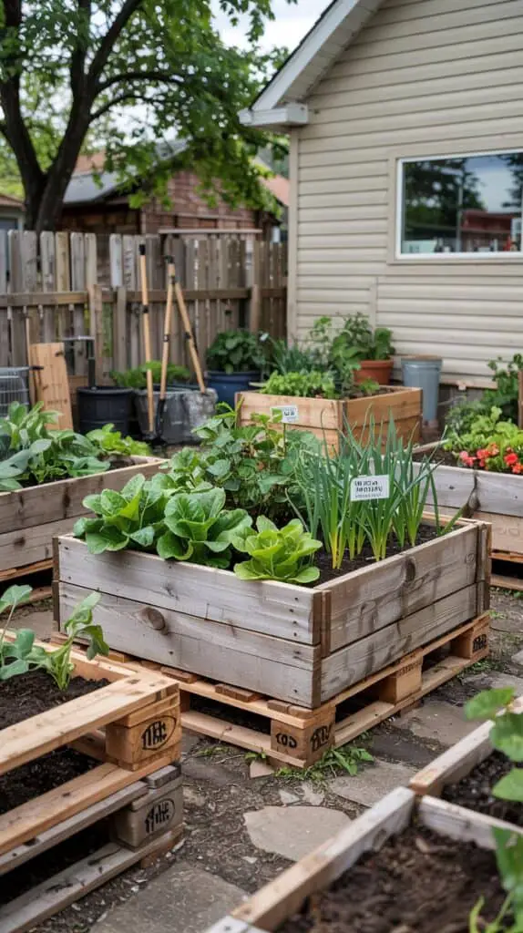 Wood is the most common material people picture when thinking about raised bed ideas, and it doesn’t have to be expensive. Pallets are often available for free from local businesses, warehouses, or community listings. When choosing pallets, look for ones marked HT (heat-treated) rather than chemically treated.