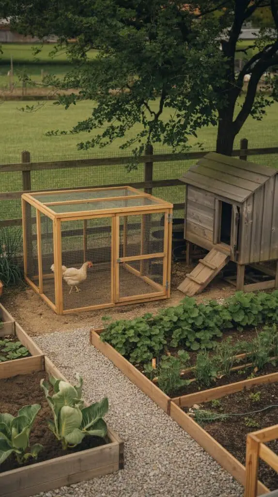 This idea isn’t just about looks—it’s about creating a space where chickens and plants can live side by side in harmony, without either one taking over. You’ll build a run that feels safe, a little wild, and totally beautiful in that messy-garden, countryside-chic kind of way.