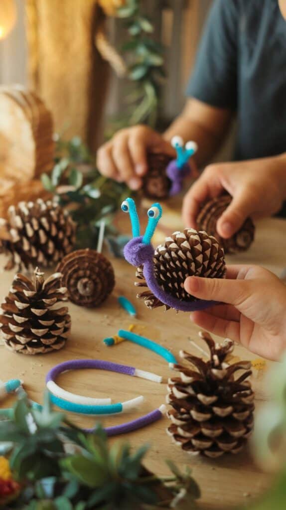 - Colorful Creatures: Paint the pinecones in soft pastels or bold primary colors — ideal for a kid’s room or classroom project.