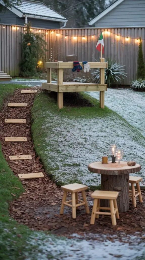 A gentle pathway instantly makes the slope feel intentional instead of chaotic. Plus, it’s the easiest space to build on as you add more play features later.