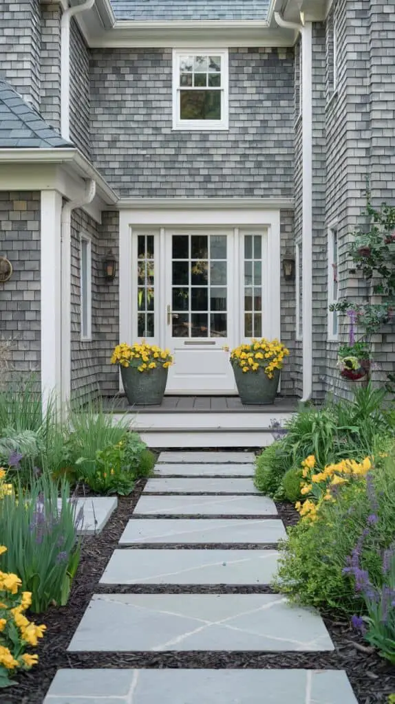 - A sturdy planter on each side of the steps (even if the plants are simple)