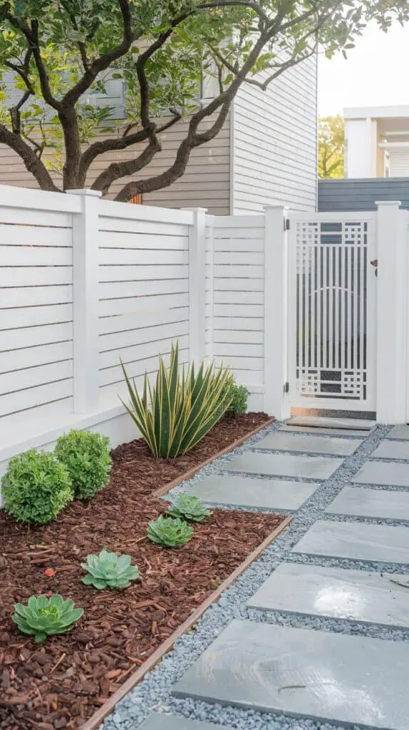 This is where pressure-washing helps again. When the path and gate area are clean, even a basic mulch-and-plant setup looks deliberate. It becomes “a simple side garden” instead of “the place where the weeds live.”