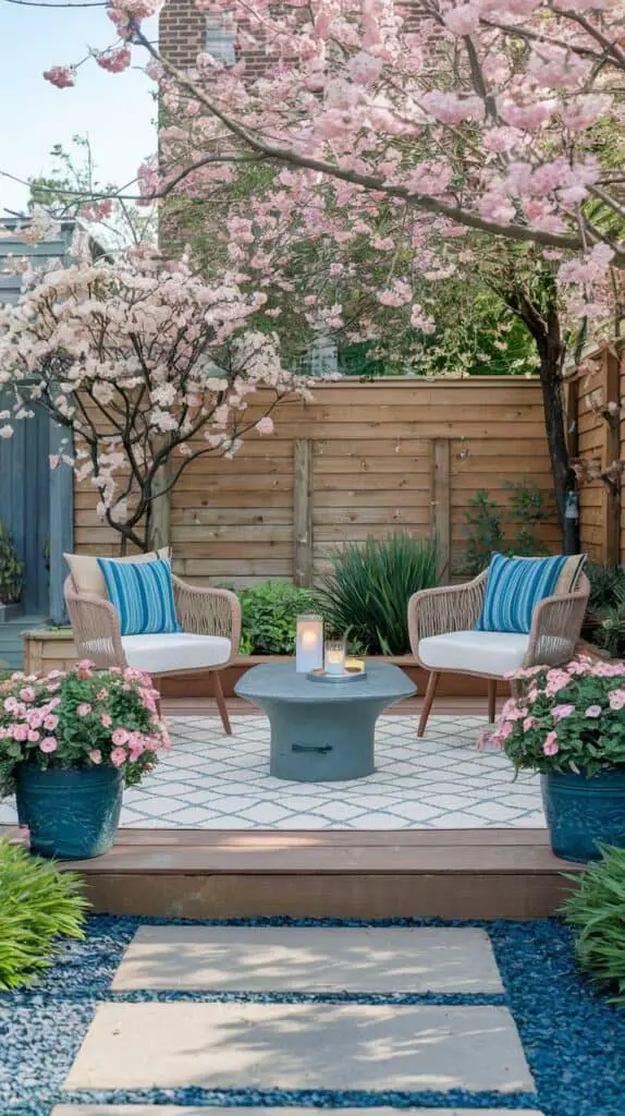 A spring garden doesn’t have to be all plants. Often the biggest upgrade is cleaning and framing the place you actually sit.
