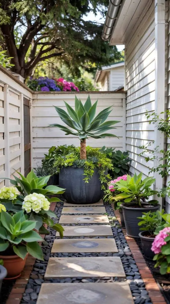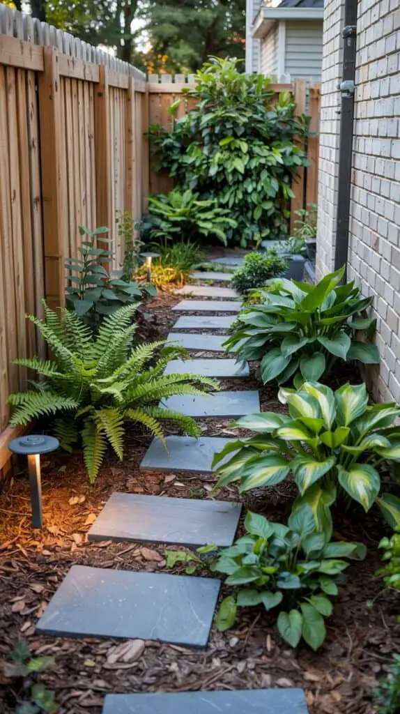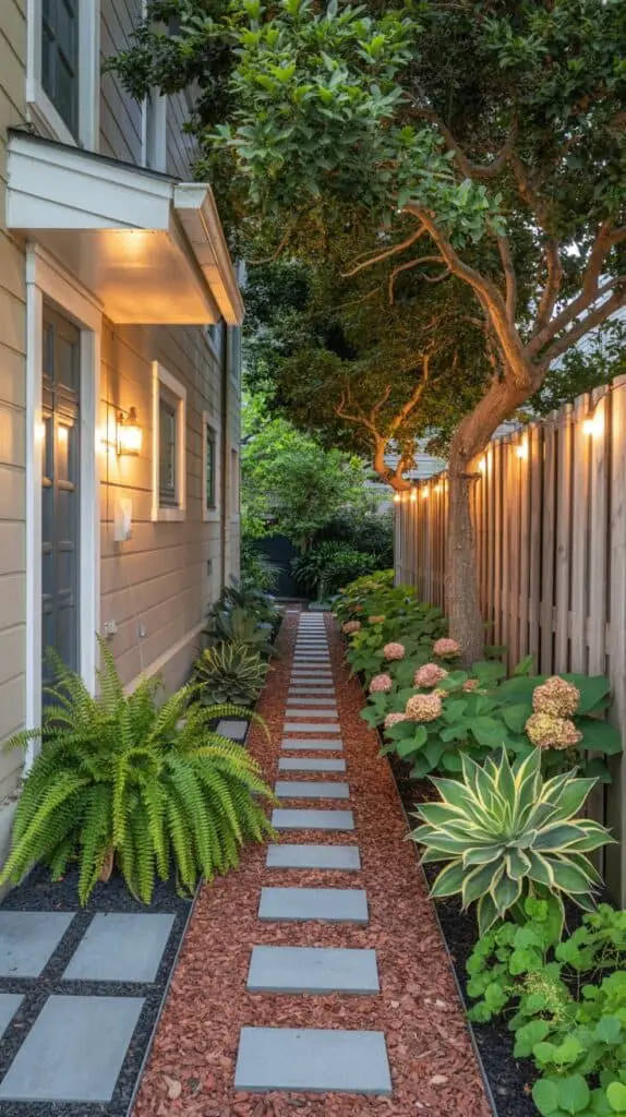 Side yards feel more magical when there’s something waiting at the end — a visual reward.