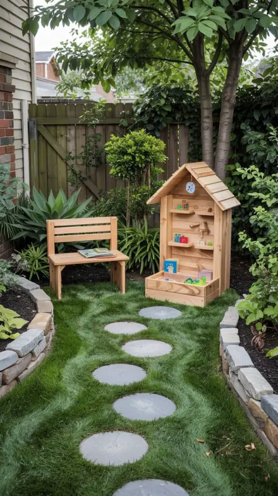 Kids love a “follow the path” moment, and adults love how tidy and intentional it makes the whole area look. If the space is narrow, stick to a slightly curved layout to add gentle movement.
