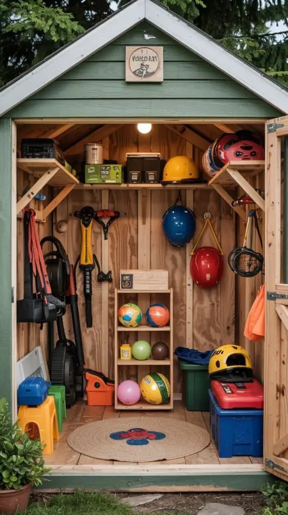 One overlooked aspect of outdoor shed ideas is accessibility for kids. If children use the yard daily, the shed should support that instead of becoming a barrier. A small, clearly defined kid zone can make a big difference.